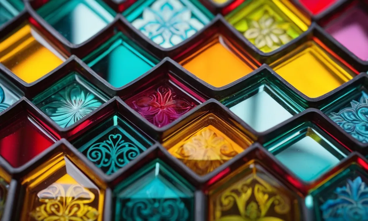 Geometric patterns can include stars, diamonds, or tessellating shapes, while floral designs might feature delicate petals, leaves, or entire bouquets frozen in glass. It’s like nature and mathematics had a beautiful glass baby! 🌸🔷